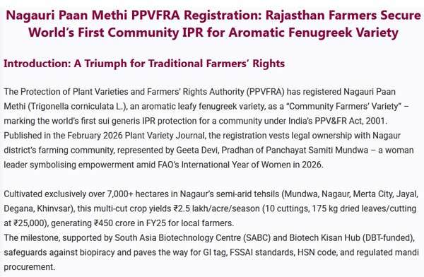 Article Link - https://krishipitaara.com/nagauri-paan-fenugreek-gi-8776/