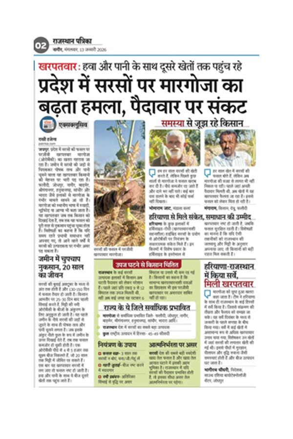 Article Link - प्रदेश में सरसों पर मारगोजा का बढ़ता हमला, पैदावार पर संकट